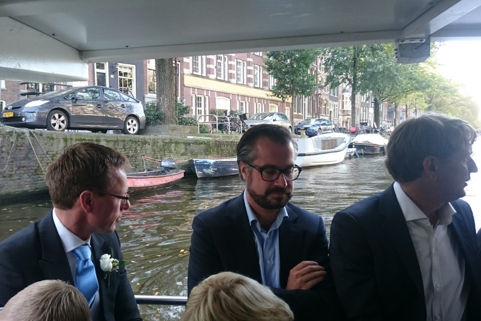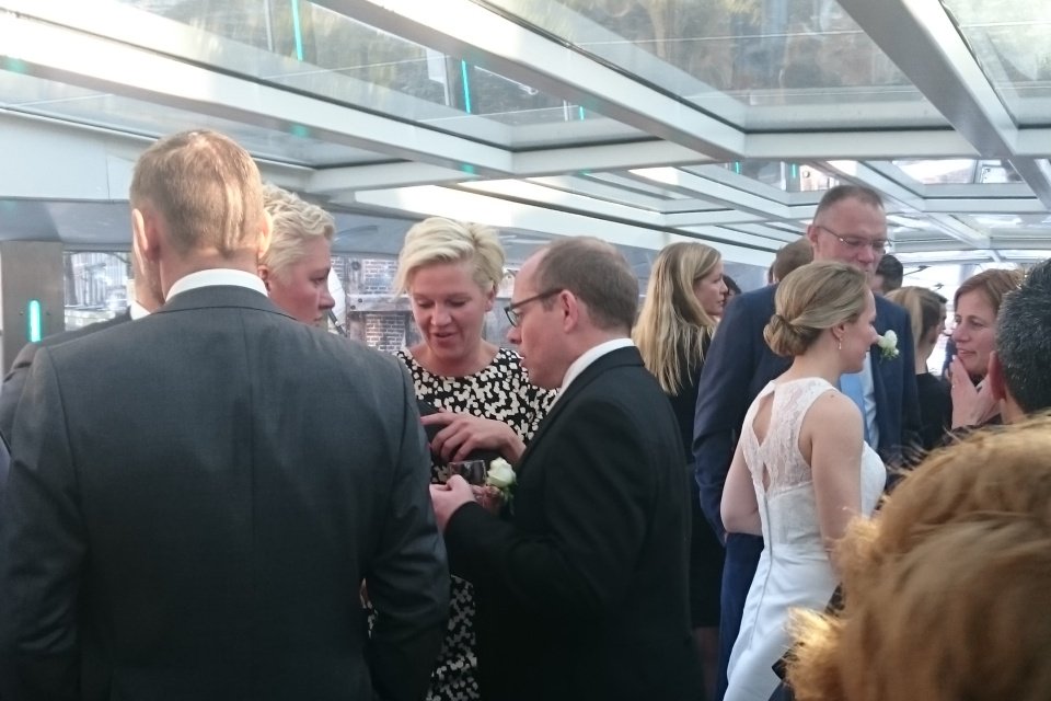 Na het proosten met een borrel zijn we met het gezelschap via de Herengracht, Prinsengracht en de Keizergracht richting de Amstel gevaren om de gasten af te zetten bij het Rosarium Amsterdam. Daar stond een heerlijk diner en een feestavond op zich te wachten.